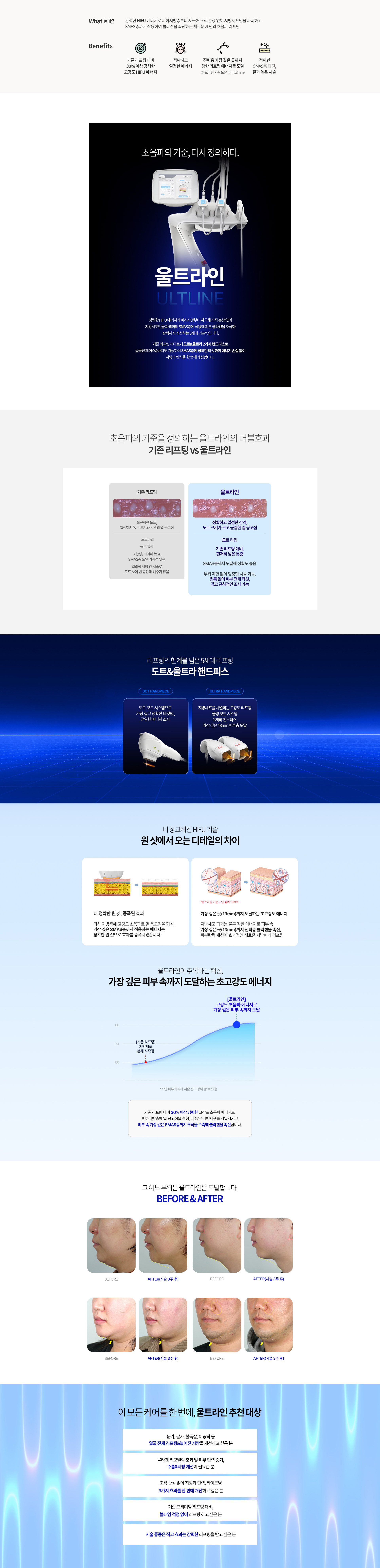 - 기존 리프팅 대비 30% 이상 강력한 고강도 초음파 에너지로